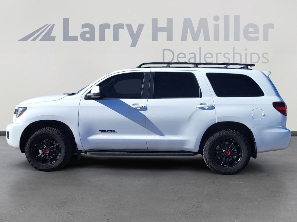 TRD Pro Package (Auto-Dimming Rear-View Mirror and Door Scuff Plate), Toyota Gold Certified Certified, 6-Speed Automatic, 4WD, ABS brakes, Active Cruise Control, Alloy wheels, Electronic Stability Control, Front dual zone A/C, Front Heated Bucket Seats, Heated door mirrors, Heated front seats, Illuminated entry, Leather Seat Trim, Low tire pressure warning, Power moonroof, Remote keyless entry, Traction control, 15 Speakers, 3rd row seats: split-bench, 4-Wheel Disc Brakes, 4.30 Axle Ratio, Air Conditioning, AM/FM radio: SiriusXM, Apple CarPlay/Android Auto, Auto High-beam Headlights, Auto-dimming Rear-View mirror, Automatic temperature control, Brake assist, Bumpers: body-color, Delay-off headlights, Driver door bin, Driver vanity mirror, Dual front impact airbags, Dual front side impact airbags, Emergency communication system: Safety Connect with 1-year trial, Exterior Parking Camera Rear, Four wheel independent suspension, Front anti-roll bar, Front Bucket Seats, Front Center Armrest, Front fog lights, Front reading lights, Fully automatic headlights, Garage door transmitter: HomeLink, Headlight cleaning, Knee airbag, Leather Shift Knob, Leather steering wheel, Navigation system: Dynamic Navigation with up to 3-year trial, Occupant sensing airbag, Outside temperature display, Overhead airbag, Overhead console, Panic alarm, Passenger door bin, Passenger vanity mirror, Power door mirrors, Power driver seat, Power steering, Power windows, Radio: Premium Audio w/Nav/JBL/Clari-Fi, Rear air conditioning, Rear anti-roll bar, Rear reading lights, Rear seat center armrest, Rear window defroster, Rear window wiper, Reclining 3rd row seat, Roof rack, Security system, Speed control, Speed-sensing steering, Split folding rear seat, Spoiler, Steering wheel mounted audio controls, Tachometer, Telescoping steering wheel, Tilt steering wheel, Trip computer, Variably intermittent wipers, Voltmeter, and Wheels: 18 Black BBS Forged Aluminum Alloy.